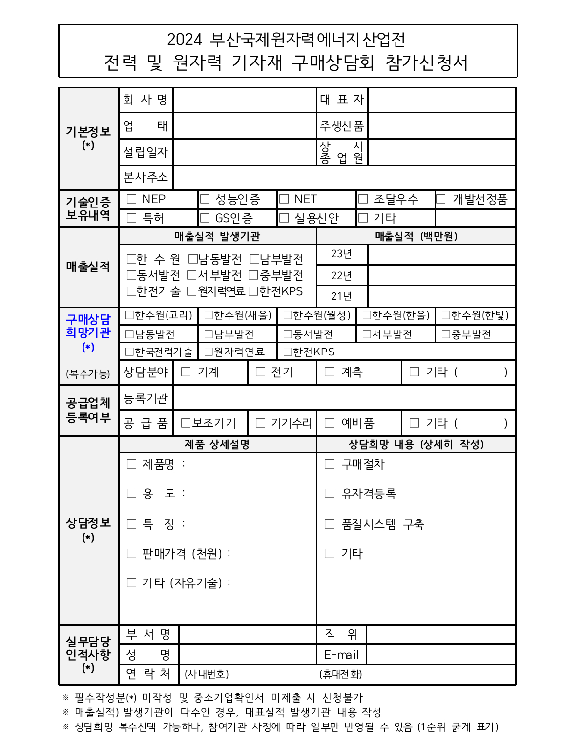 전력 및 원자력 기자재 구매상담회 신청하실 분들은