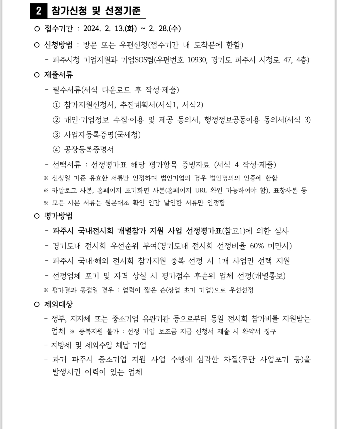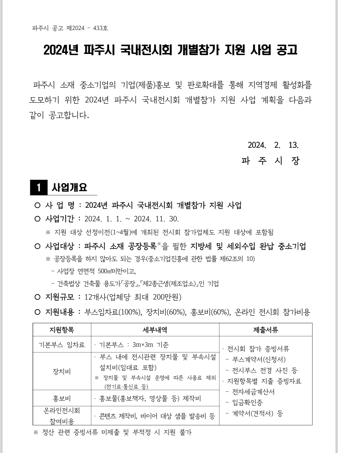 [경기 파주시] 2024년 파주시 국내전시회 개별참가 지원 사업 공고